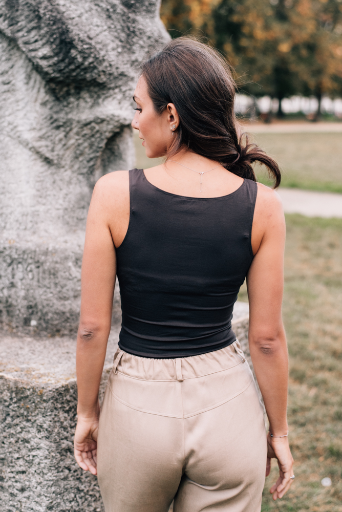 Tílka šijeme z nižší gramáže bambusu (210 g/m2), aby v nich bylo příjemně v létě i v zimě. Jsou krásně jemná a prodyšná.