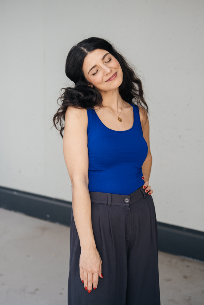 Tílka šijeme z nižší gramáže bambusu (210 g/m2), aby v nich bylo příjemně v létě i v zimě. Jsou krásně jemná a prodyšná.