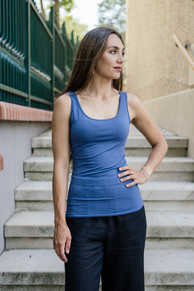 Tílka šijeme z nižší gramáže bambusu (210 g/m2), aby v nich bylo příjemně v létě i v zimě. Jsou krásně jemná a prodyšná.