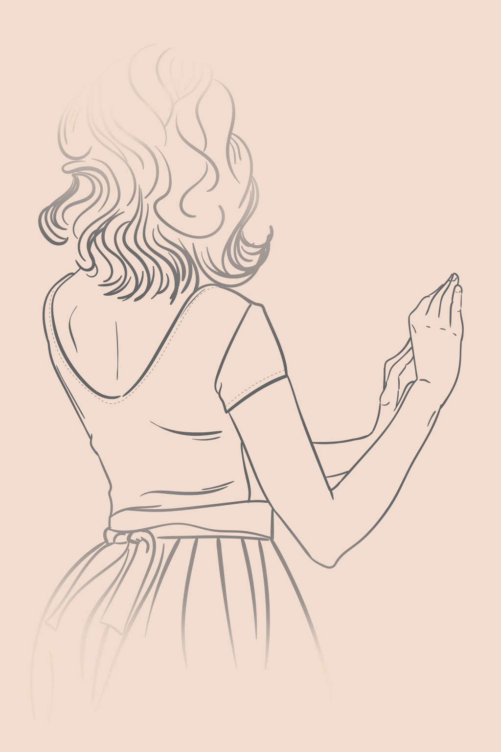 Při tvorbě tohoto střihu trička jsme se inspirovali v baletním trikotu. Rozálie má kulatý výstřih vepředu i vzadu na zádech.
