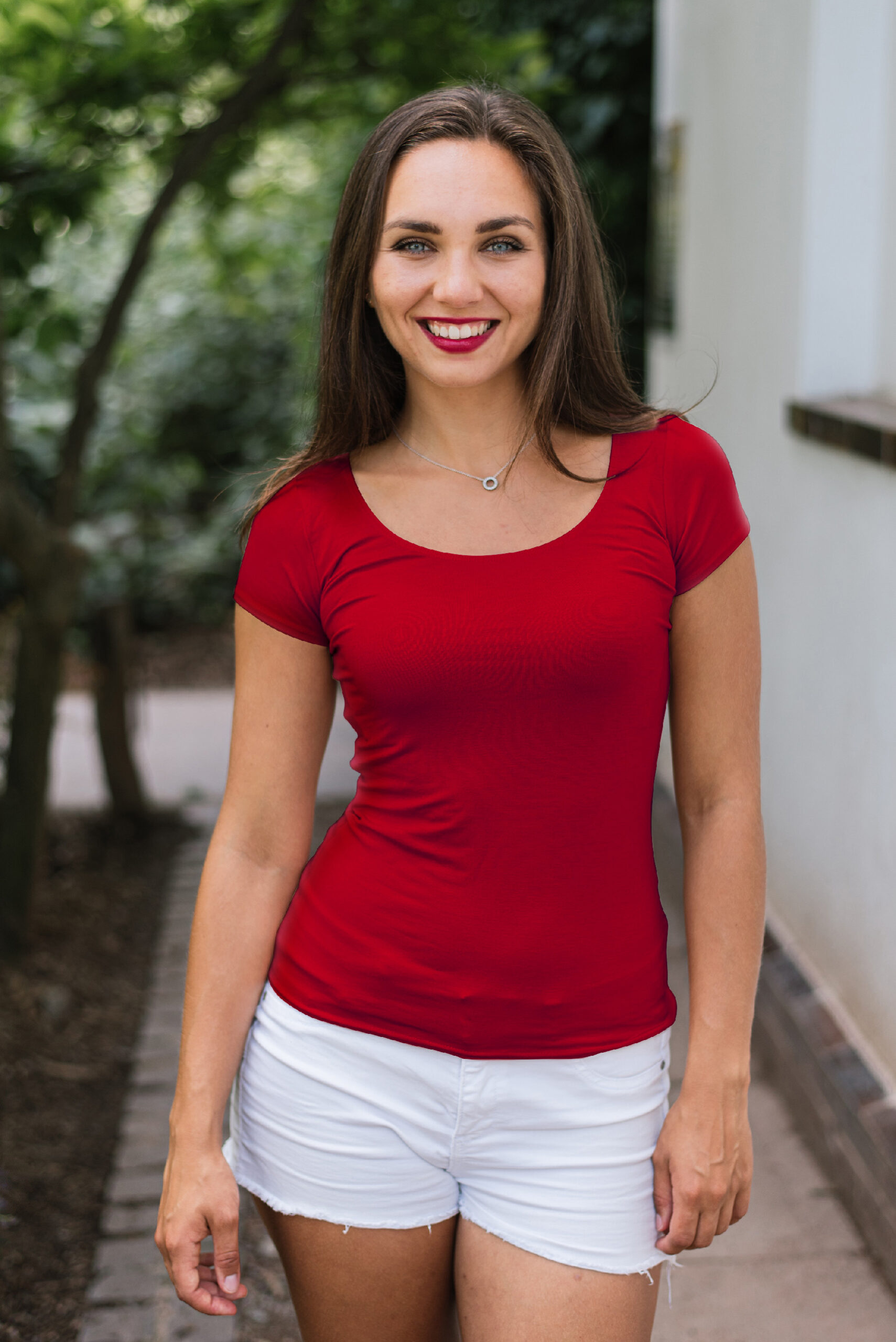 Bamboo tričko Rozálie s kr. rukávem tmavě červené Velikost: S