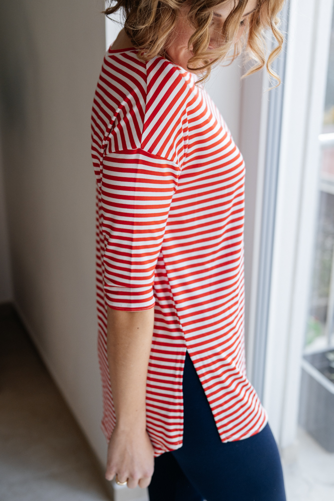 Bambusová tunika Dora s 3/4 rukávem červeno-bílý proužek Velikost: M