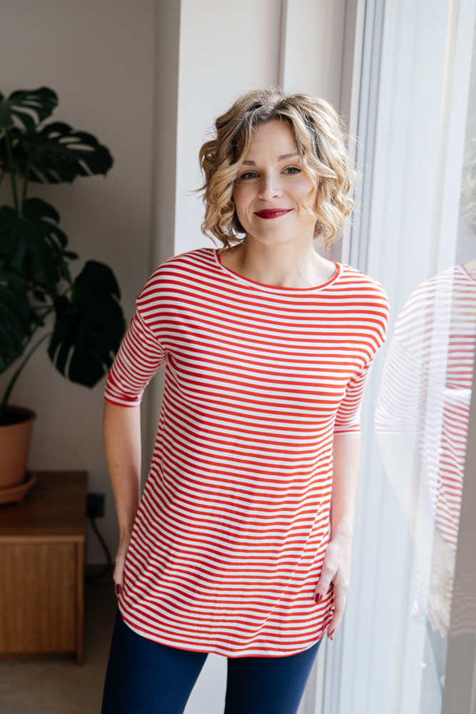 Bambusová tunika Dora s 3/4 rukávem červenobílý proužek Velikost: XL