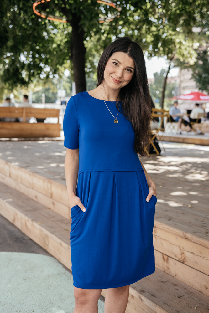 Bambusové šaty Vera s rukávem po loket královsky modrá Velikost: XS