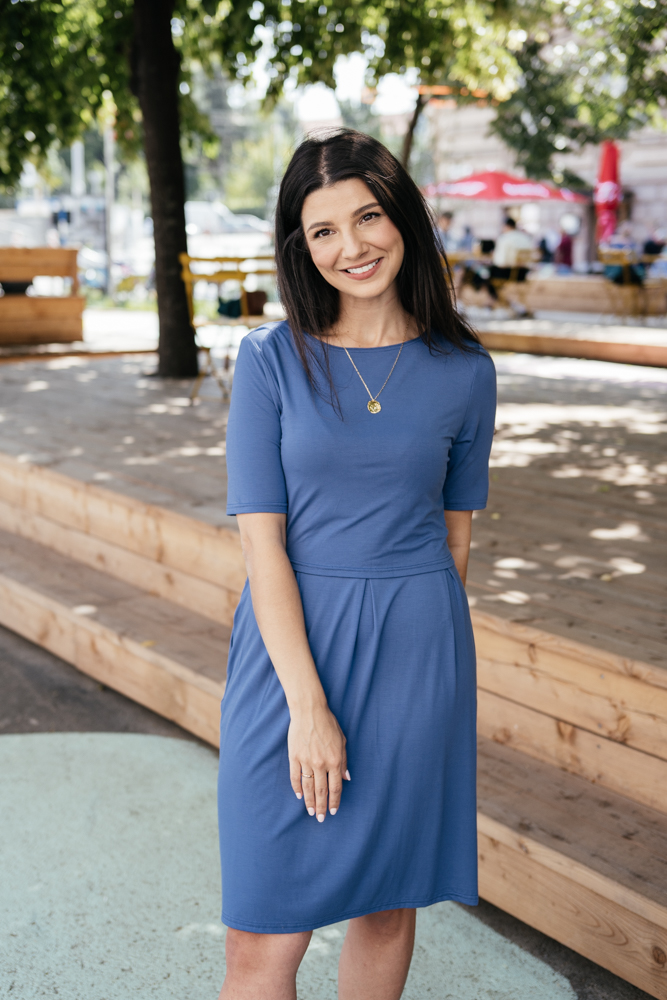 Bambusové šaty Vera s rukávem po loket světle modrá Velikost: S