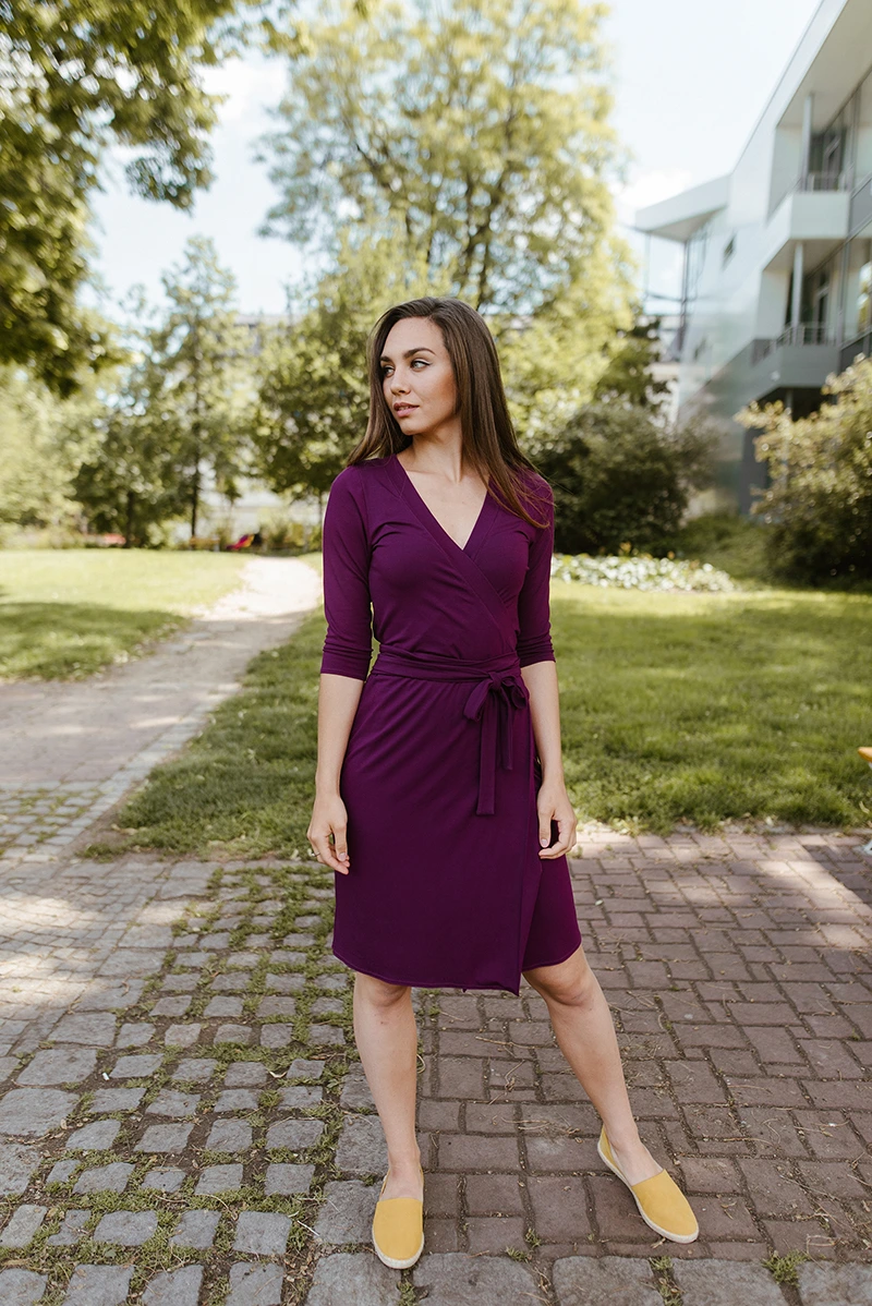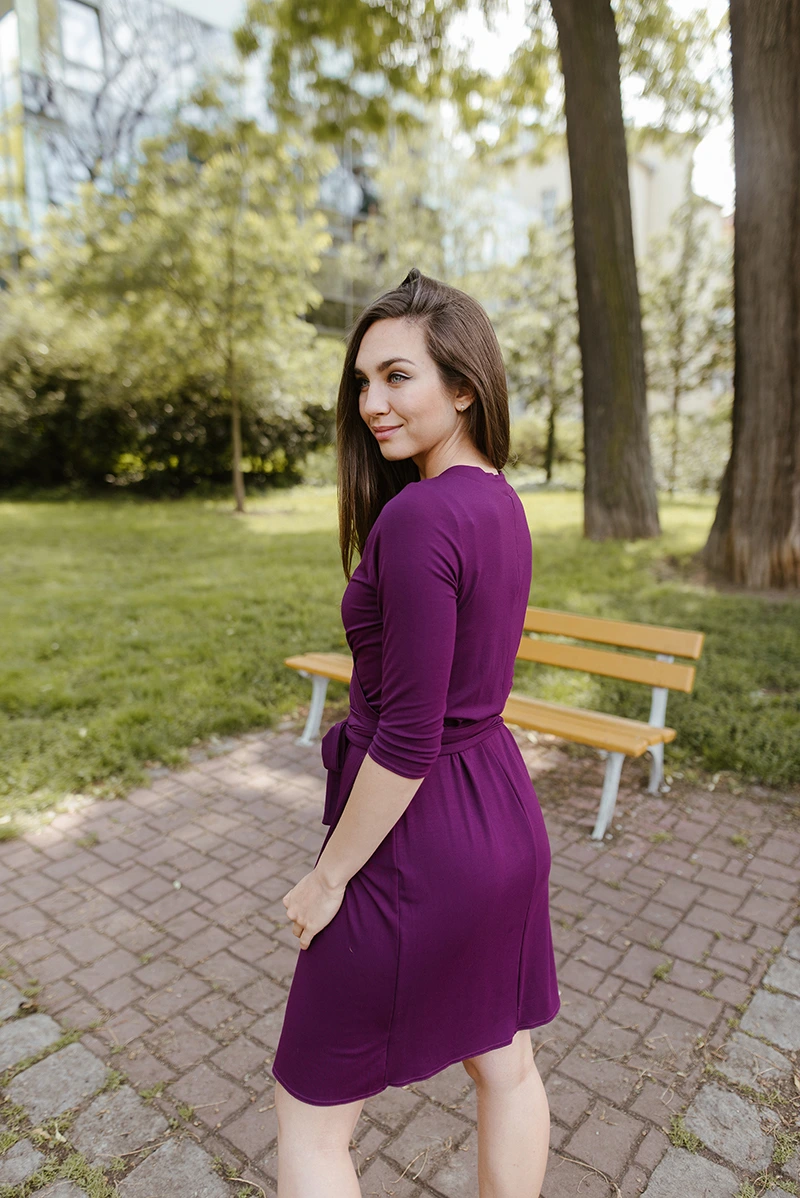 Bambusové zavinovací šaty Meda s 3/4 rukávem, vyšší gramáž, švestkově fialové Velikost: XS