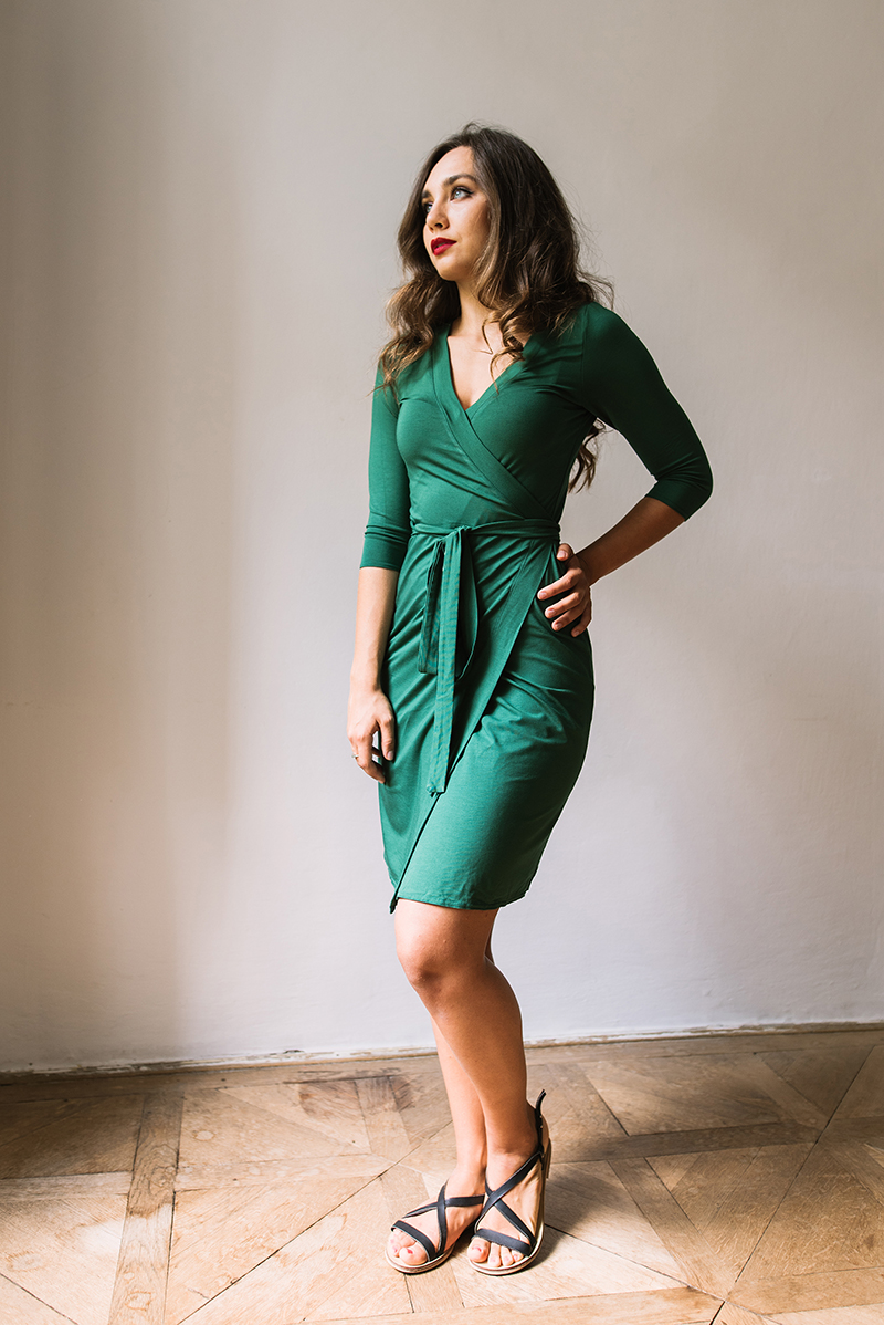 Bambusové zavinovací šaty Meda s 3/4 rukávem, vyšší gramáž, tmavě zelené Velikost: S