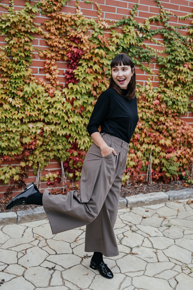 Na jaře nebo na podzim můžete culottes navrstvit s podkolenkami nebo merino punčochami. Velmi elegantně k nim vypadá černý bambusový rolák, trička Aria, kostičkovaná halenka Rosa, ale i  košile Vero. Dokonalé office kombo vykouzlíte s žebrovanými tričky Rue.