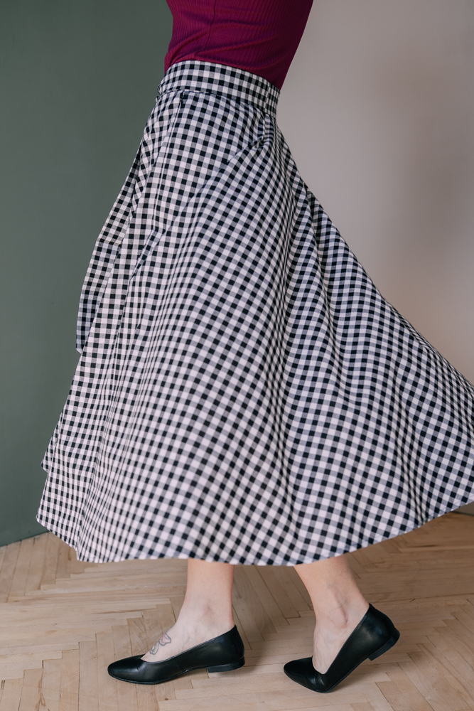 Délka sukně je bez pásku. Šířka pásku je 4,5 cm, součástí sukně je i odnímatelná stuha.