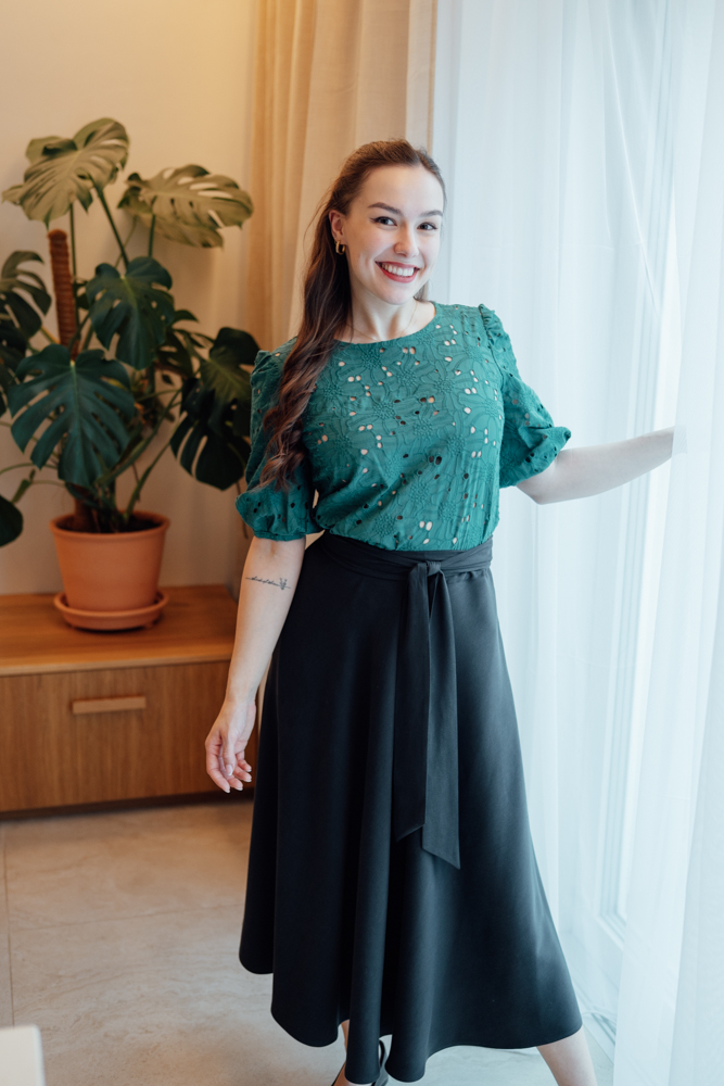 Černý pásek vyrobený ze slavnostního materiálu. Skvěle doplňuje černou slavnostní sukni Bibi.