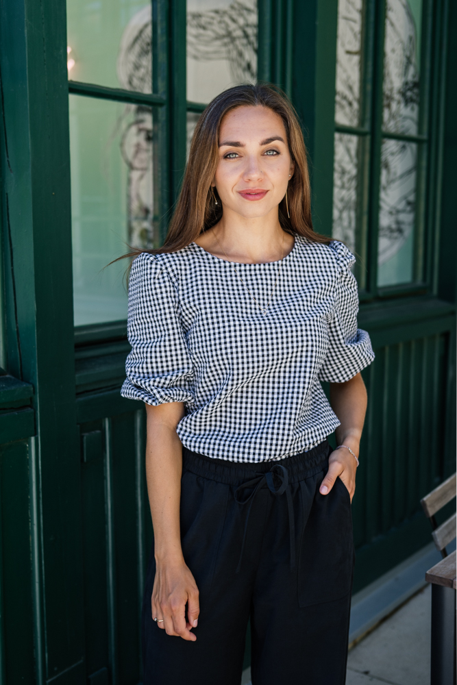 Halenka s nařasenými rukávy Rosa černobílá kostička Velikost: XS