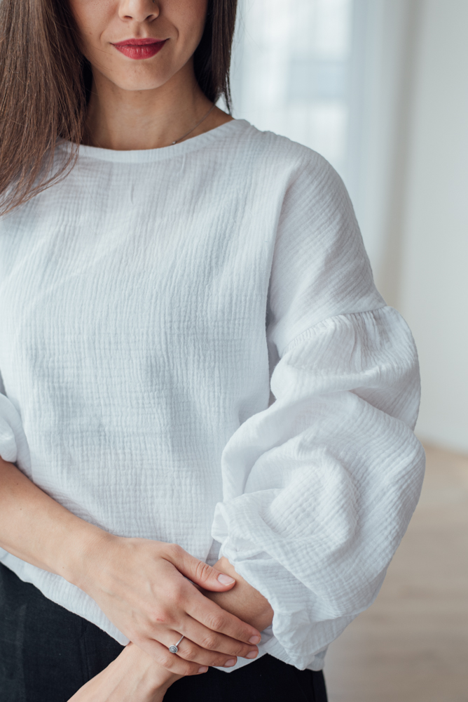 Halenku můžete nosit zastrčenou v sukni, nebo částečně zastrčenou v kalhotách.