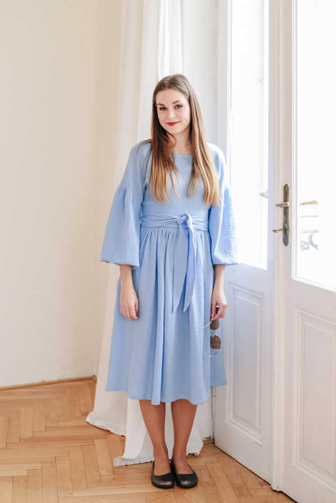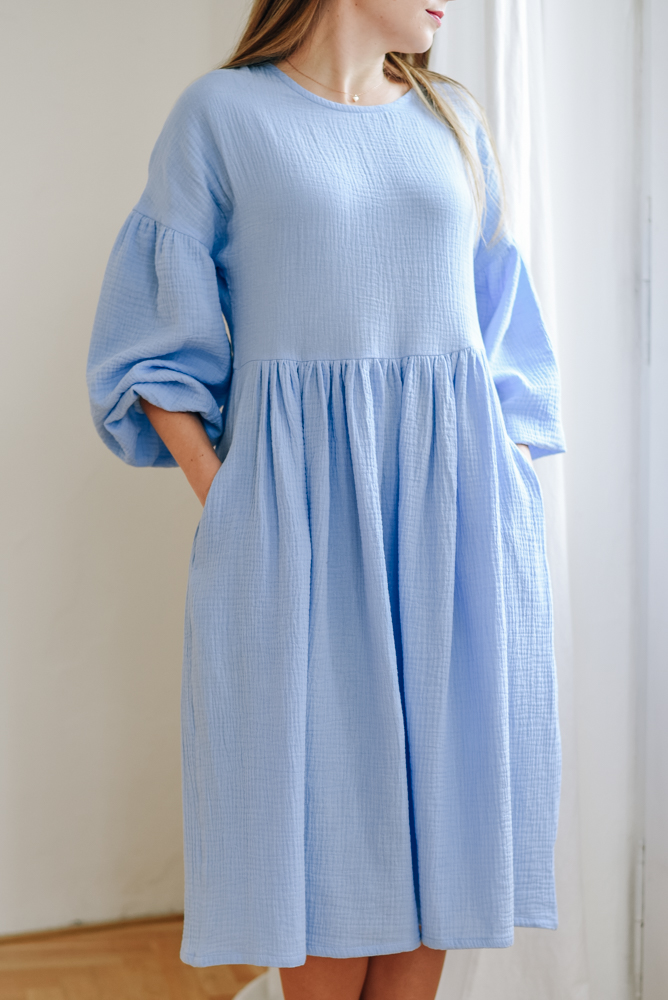 Mušelínové šaty Coco nebesky modré Velikost: L