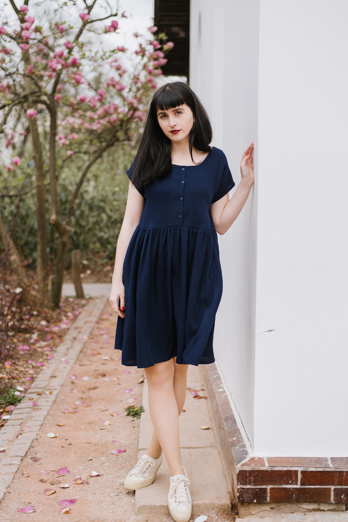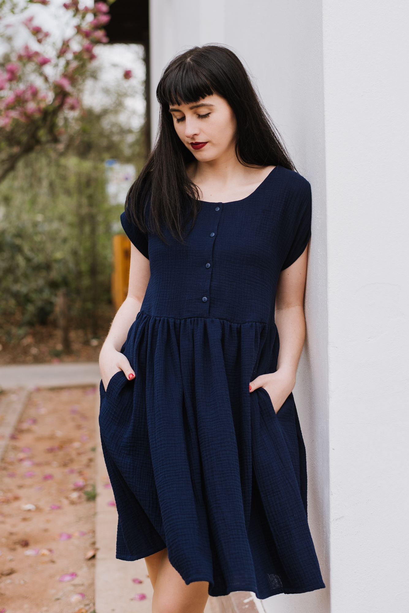 Mušelínové šaty Olivie propínací tmavě modré Velikost: XXS