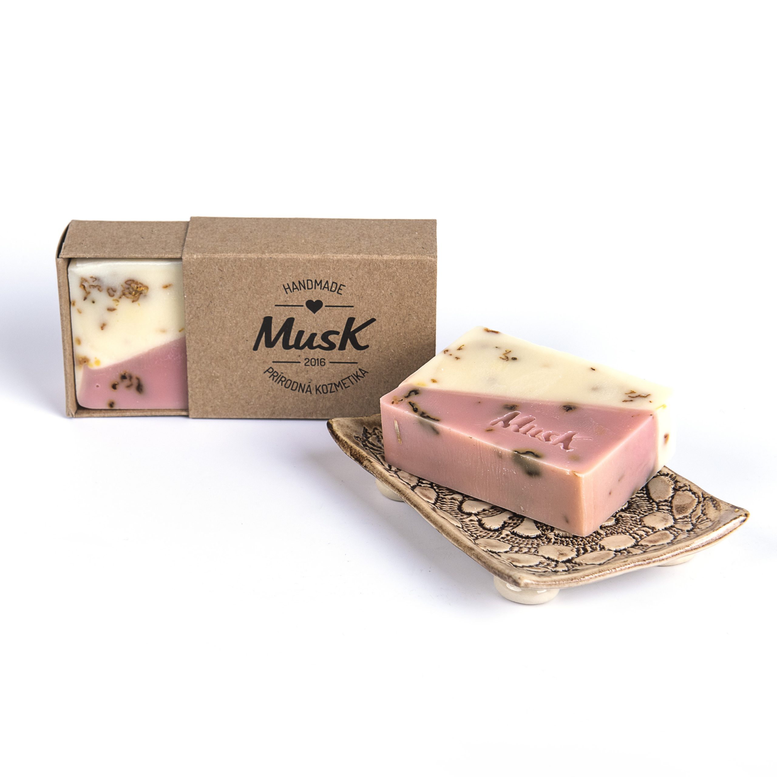 Romantická kombinace růže a jasmínu dodává tomuto mýdlu nejen nádhernou květinovou vůni, ale i léčivé účinky. Kromě macerátu těchto bylin obsahuje mýdlo i sušené bylinky s jemným peelingovým efektem. Nechybí ani kakaové máslo s vysokým podílem vitamínu E a antioxidantů. Pomáhá zjemnit pleť a krásně ji hydratuje.