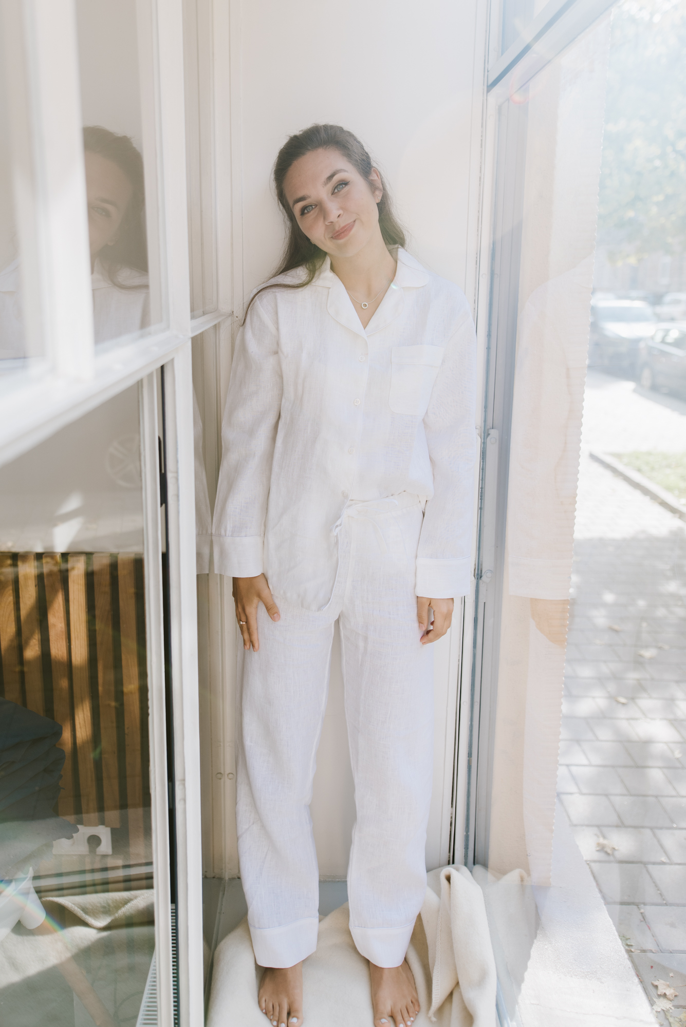 Pyžamo je ozdobené paspulkou. Knoflíky jsou vyrobené v České republice.