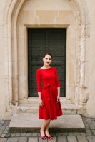 Údržba: teplota praní 30°C, nebělit, žehlit zrubu při maximální teplotě žehlící plochy 150°C, nesmí se chemicky čistit, nesušit v bubnové sušičce. Doporučujeme nepřeplňovat buben pračky a prát z rubu v tekutých pracích prostředcích. Sušit v horizontální poloze, aby se šaty neprověsily.