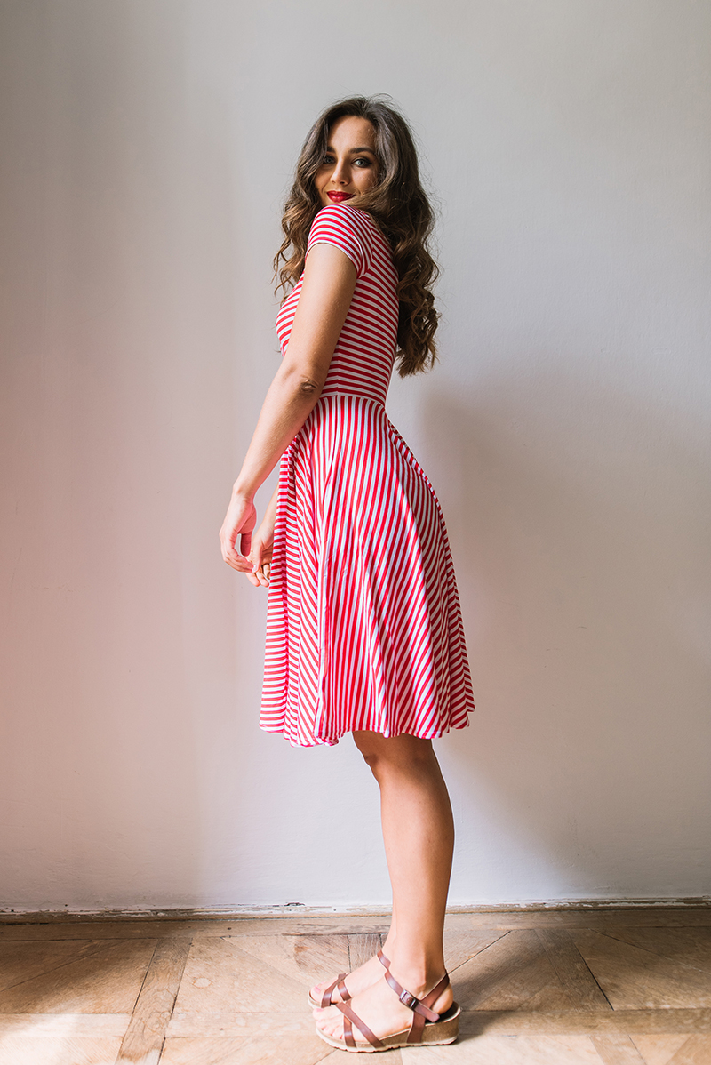 Šaty mají v pase všitou silikonovou gumičku, která zpevňuje švy.