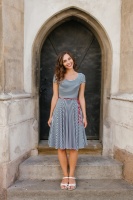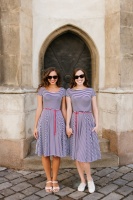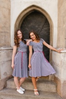 Šaty jsou přestřižené v pase a mají v pase všitou silikonovou gumičku, aby se nepáraly švy. Délka sukně na fotce je 60 cm.