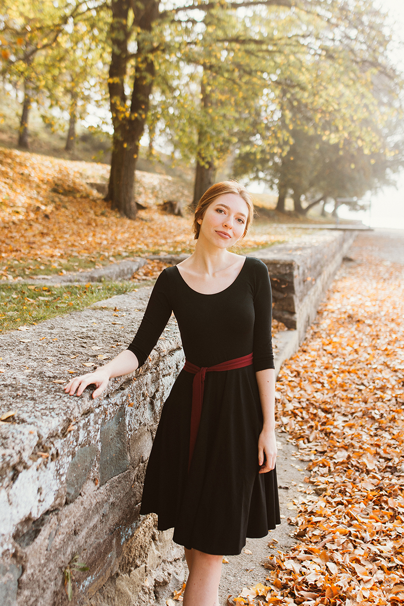 Údržba: teplota praní 30°C, nebělit, žehlit zrubu při maximální teplotě žehlící plochy 150°C, nesmí se chemicky čistit, nesušit v bubnové sušičce. Doporučujeme nepřeplňovat buben pračky a prát z rubu v tekutých pracích prostředcích. Sušit v horizontální poloze, aby se šaty neprověsily.