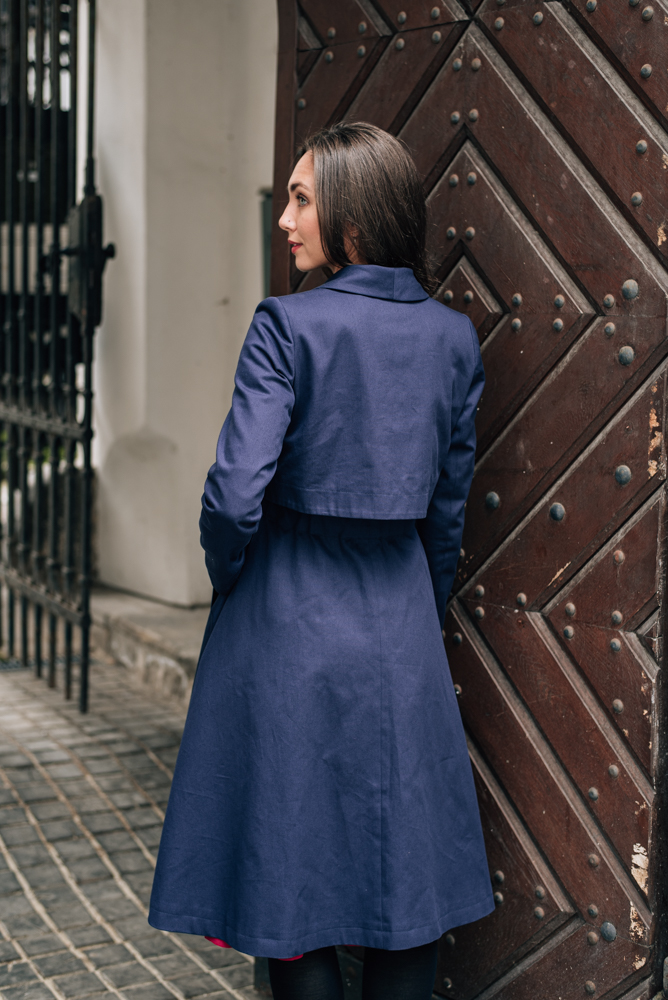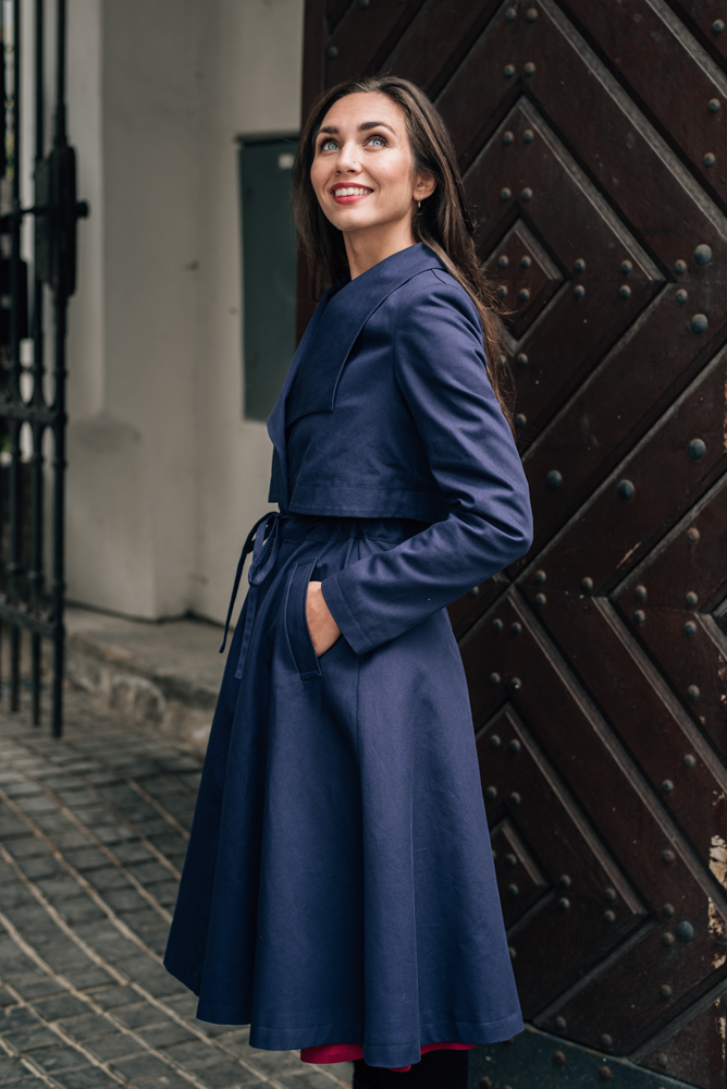 Podzimní kabát je spíše elegantnějšího ražení s lehce retro nádechem. Hodí se ke všem kouskům z naší nabídky. Líbí se nám kombinace tón v tónu s černými nebo béžovými kalhotami Mila. Velmi se hodí i k sukním Celeste či šatům Sandra.
