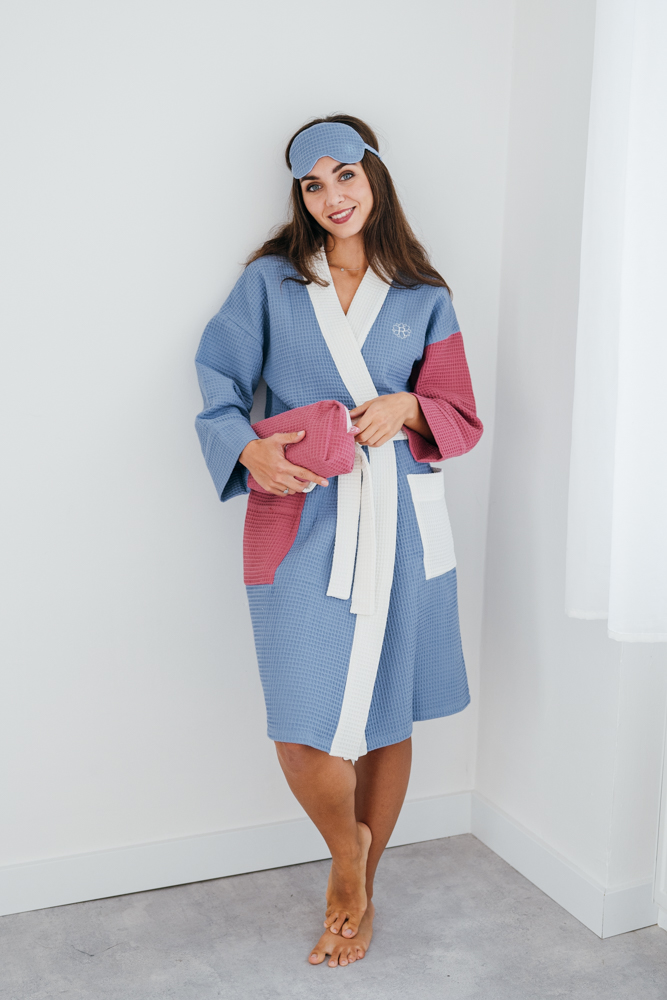 Wafflový župan modro-bílo-růžový Velikost: M/L