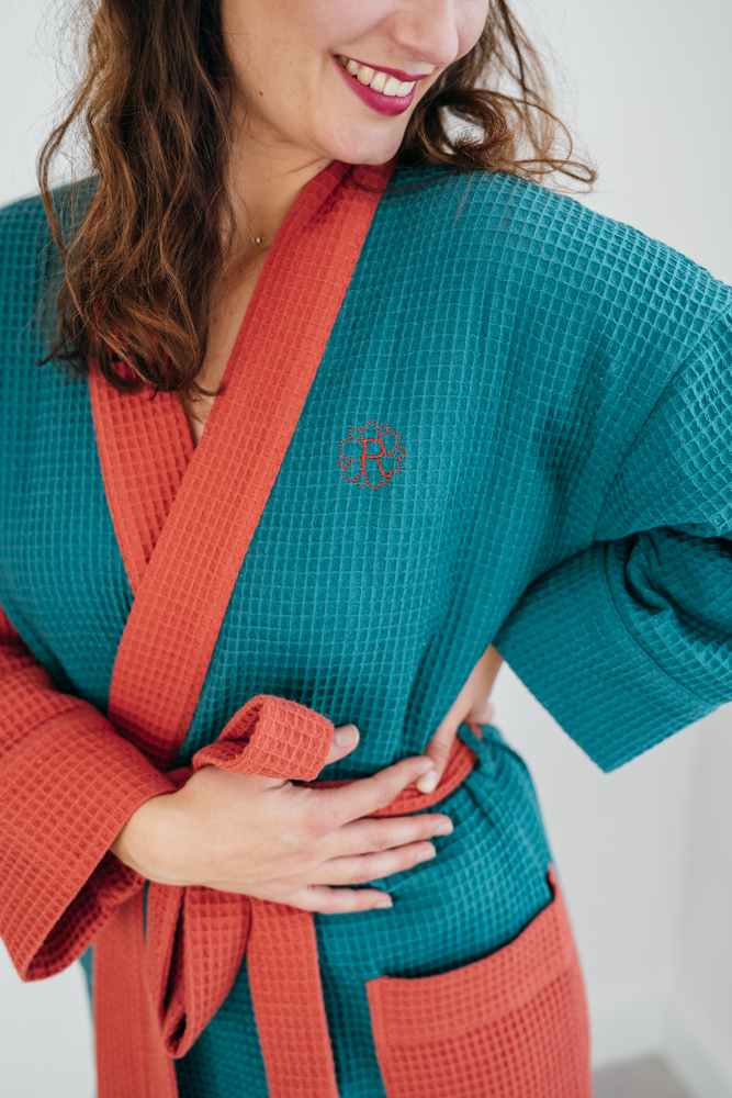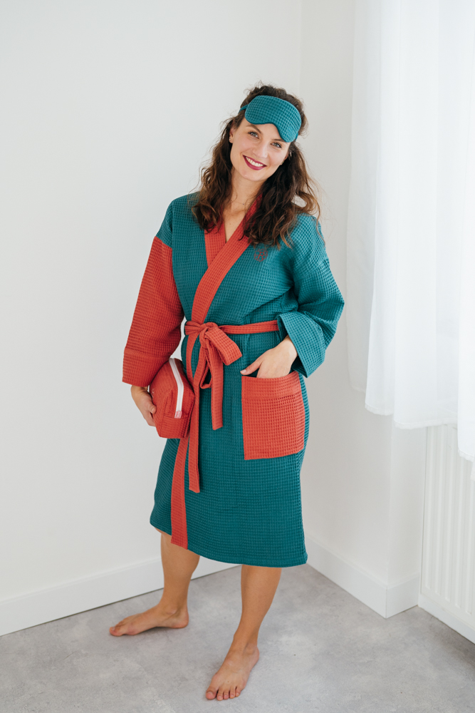 Wafflový župan nefritovo-cihlový Velikost: XL