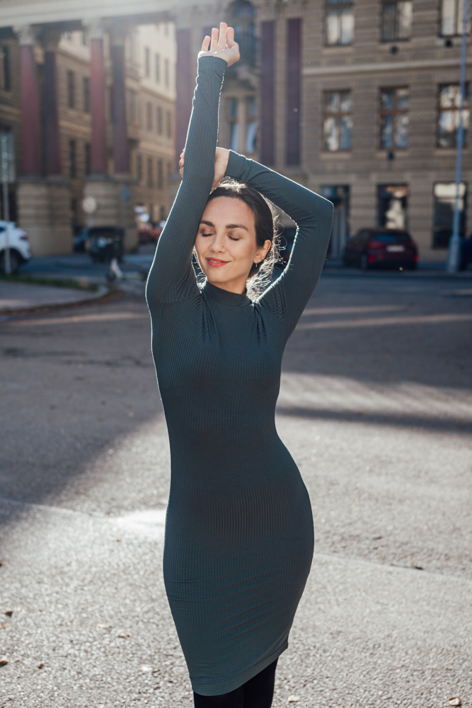 S minimalistickými žebrovanými šaty vytvoříte pohodlný outfit raz dva. Se správnými doplňky se hodí i na formální příležitosti.