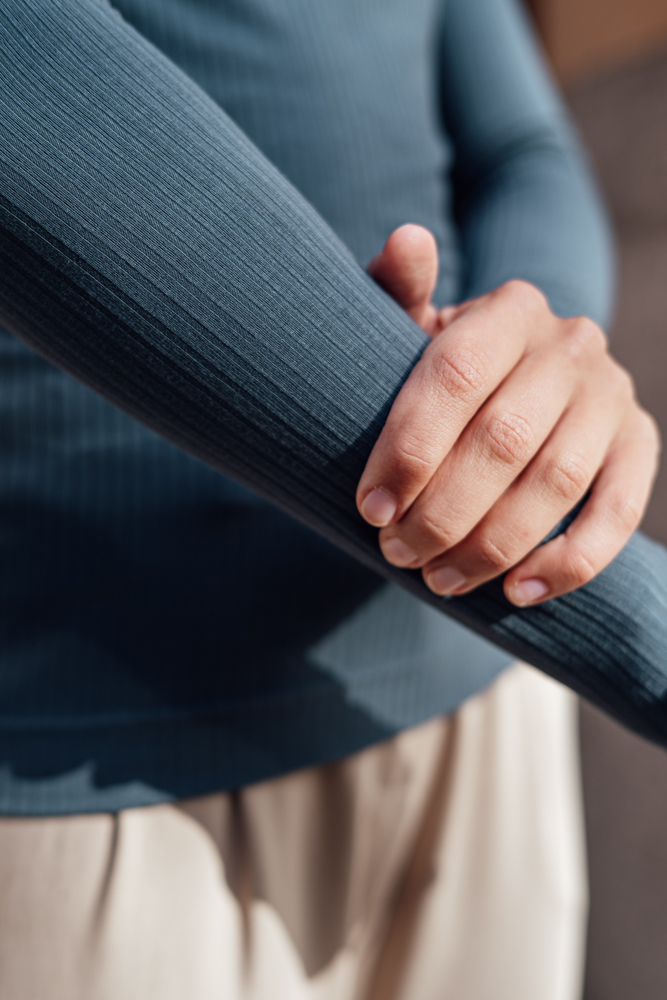 Elegantní žebrované tričko se skvěle hodí ke culottes. Parádní business outfit vytvoříte s kalhotami Mila nebo Aida.