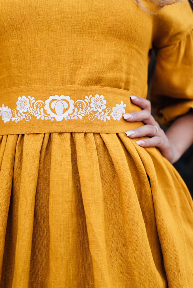 SKU: 13293_POU Kategorie: Vyšívané pásky Štítky: Barva:Žlutá , ,, Materiál:Len, Varianta:Pouze pásek, Vzor:Květy